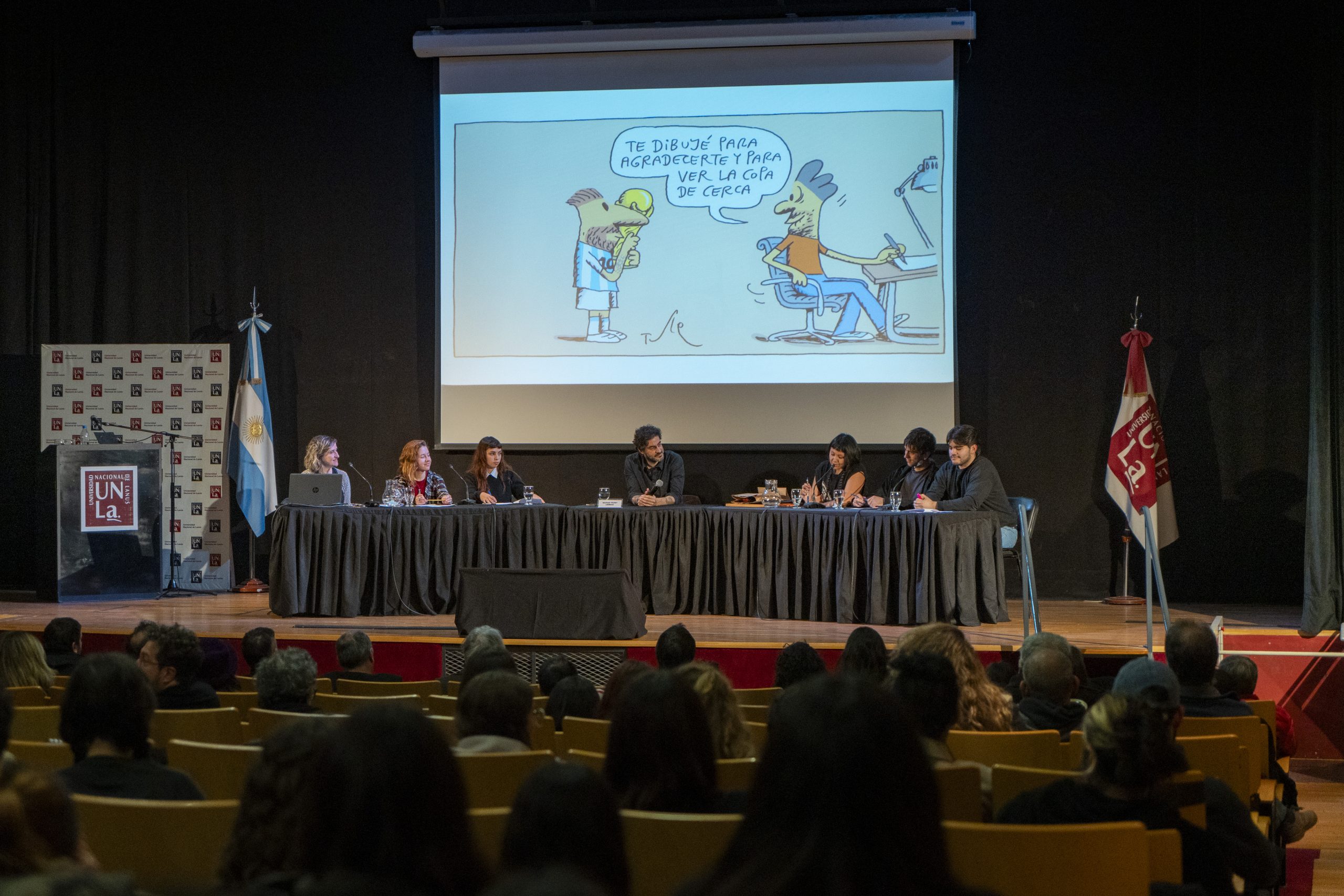 Durante el acto de entrega de la distinción, Tute dialogó con nuestros estudiantes de la carrera de Diseño Gráfico y Comunicación Visual y brindó detalles sobre su proceso creativo, explicando que su trabajo es una convergencia de ideas, observaciones y experiencias personales, a menudo influenciadas por su crianza en la zona sur de Buenos Aires. El humorista, que creció en José Mármol, recordó con emoción su vínculo con el conurbano y con la UNLa. “Me llena de orgullo porque esta es una universidad pública que piensa en las necesidades de la región, formando profesionales comprometidos con el desarrollo de su comunidad”, dijo. También dedicó el reconocimiento a su tío, nuestro querido Claudio Loiseau, un referente en diseño gráfico y parte de la historia de la Universidad: además de ser el creador de nuestro logo, Claudio Loiseau se desempeñó desde el nacimiento de la universidad, y durante un largo tiempo, como director del área de Diseño y Comunicación Visual. “No sé si estos reconocimientos se dedican —dijo Tute—, pero yo quiero dedicarlo a él y a sus hijos, mis primos, quienes también forman parte de esta universidad”.